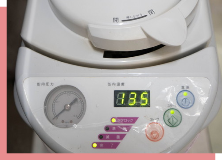 タービンなどの削る際に使用するハンドピースは、患者様毎に必ず滅菌を行っております。